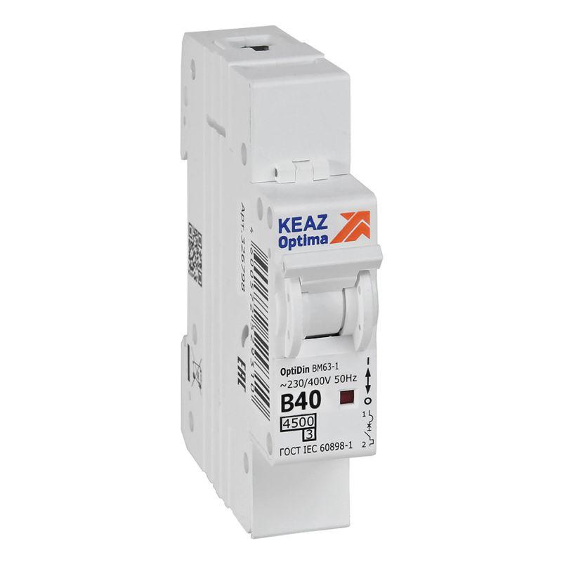 329505 | Выключатель автоматический модульный 1п B 40А 4.5кА OptiDin BM63-1B40-4.5-УХЛ3 КЭАЗ