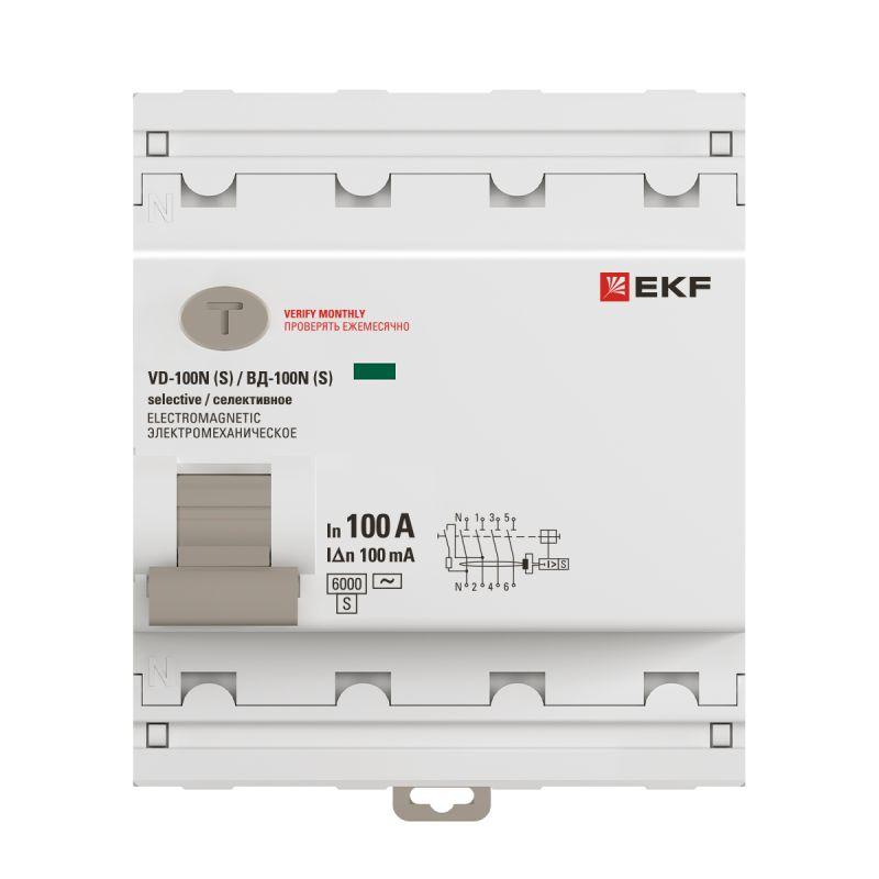 E1046MS100100 | Выключатель дифференциального тока 4п 100А 100мА тип AC 6кА ВД-100N (S) электромех. PROxima EKF