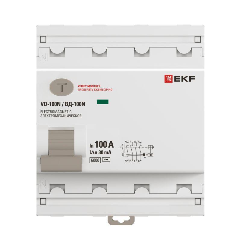 E1046M10030 | Выключатель дифференциального тока 4п 100А 30мА тип AC 6кА ВД-100N электромех. PROxima EKF