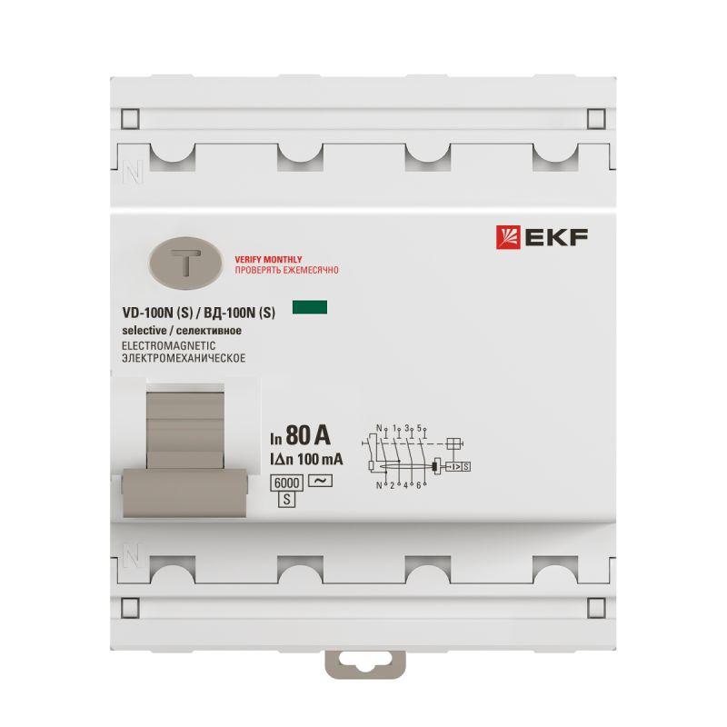 E1046MS80100 | Выключатель дифференциального тока 4п 80А 100мА тип AC 6кА ВД-100N (S) электромех. PROxima EKF