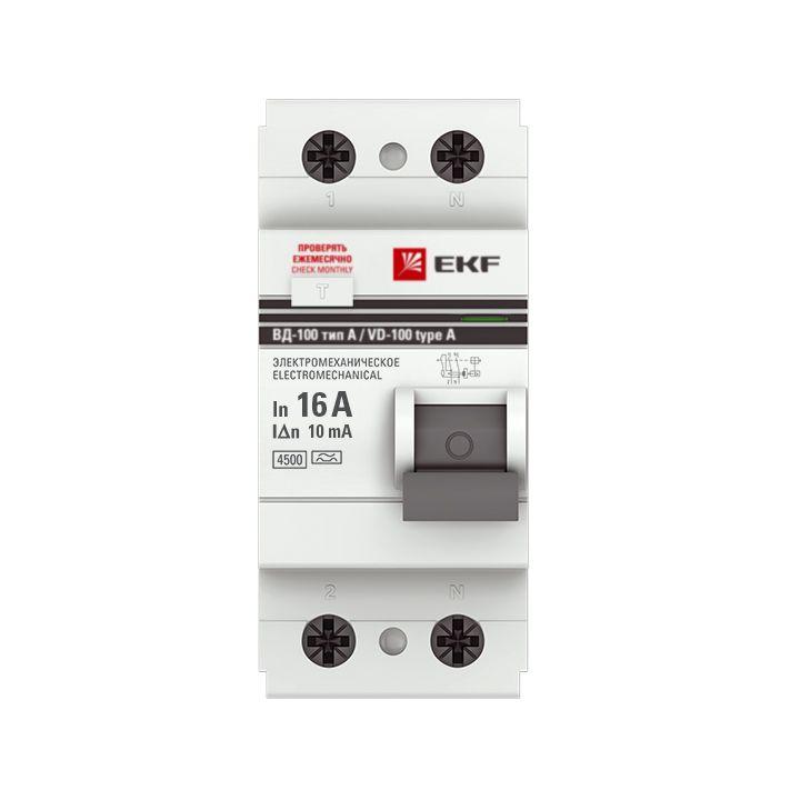 elcb-2-16-10-em-a-pro | Выключатель дифференциального тока (УЗО) 2п 16А 10мА тип A ВД-100 (электромех.) PROxima EKF