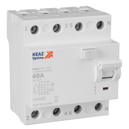 Выключатель дифференциального тока (УЗО) 4п 40А 30мА тип AC 4.5кА OptiDin DM63-4240 УХЛ4 КЭАЗ 343892