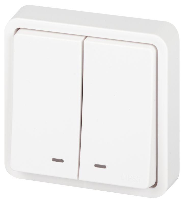 Б0063304 | Выключатель Эксперт 11-1525-01 двойн. с подсветкой IP55 10АХ-250В СУ бел. Эра