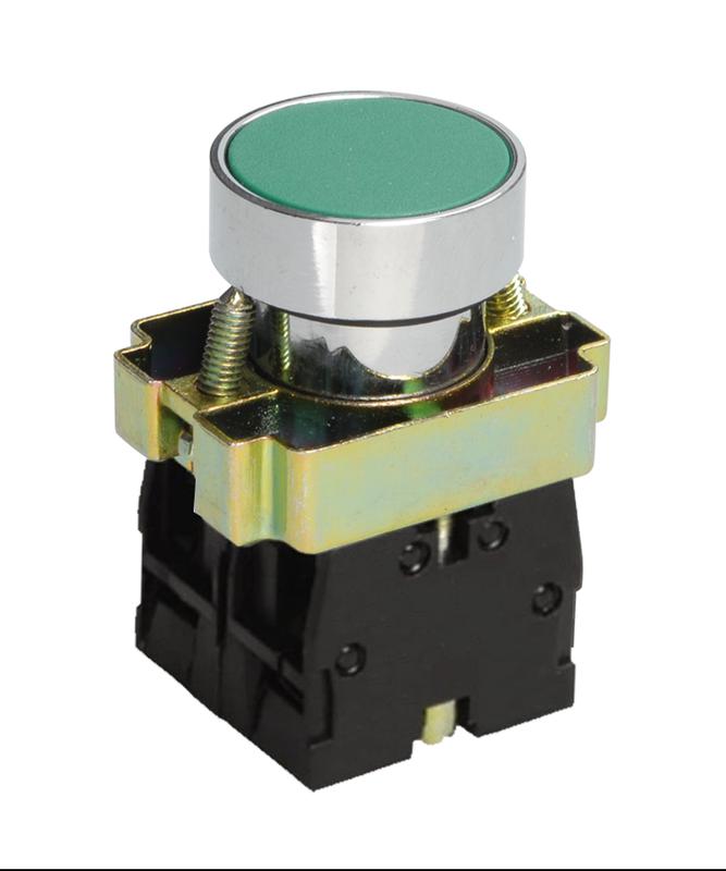 ET012083 | Выключатель кнопочный LAY5-ВА35 без подсветки 1НО+1НЗ цилиндр хром d22мм зел. Электротехник