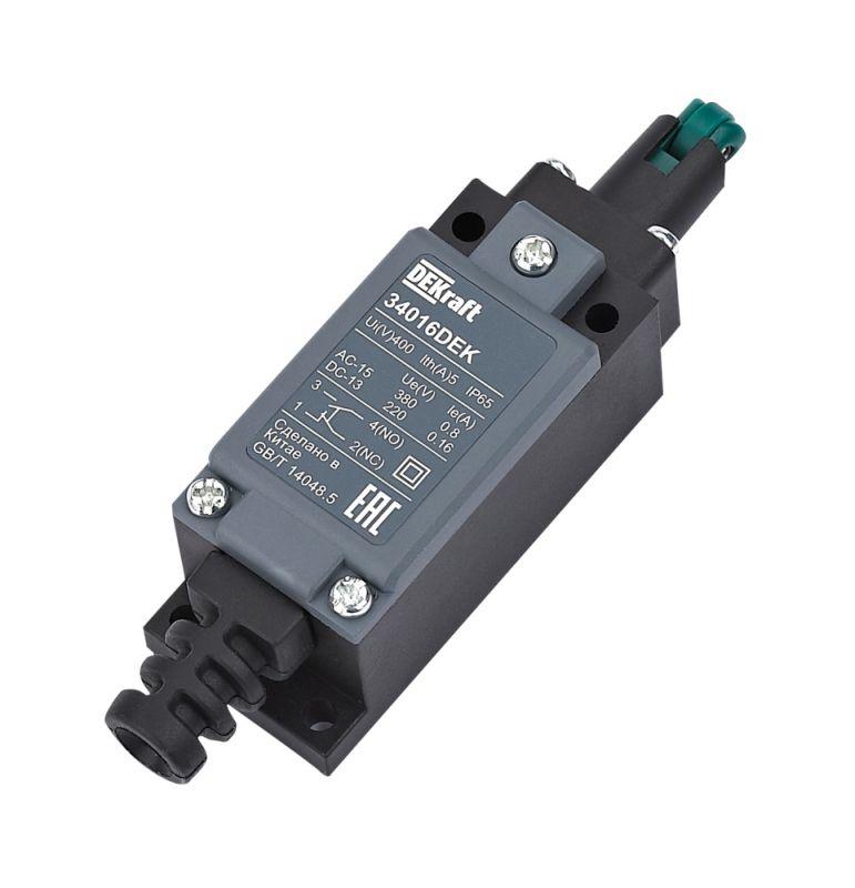 Выключатель концевой 1НО1НЗ плунжер роликового типа с вертик. включ. пласт. DEKraft 34016DEK