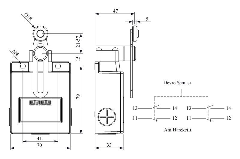 Выключатель концевой реверсивный ролик 2НО+2НЗ EMAS L54K16MEM122