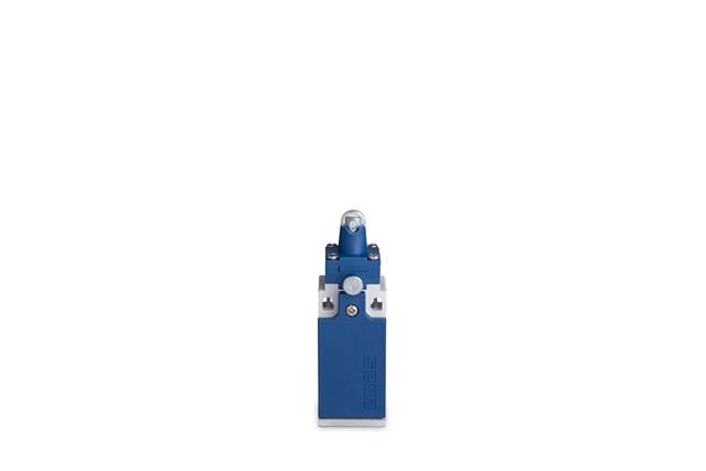 Выключатель концевой с фиксацией медленного переключения линейный 3-х направленный с пластмас. консолью и стальным плунжером и роликок Ф11мм (1НО+1НЗ) EMAS L5K23MUM332R