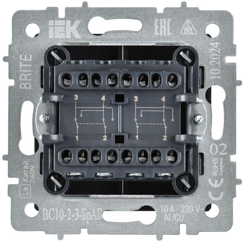 BR-V23-0-10-K91 | Выключатель перекрестный 2-кл. СП BRITE ВС10-2-3-БрАБ 10А механизм арктич. бел. IEK