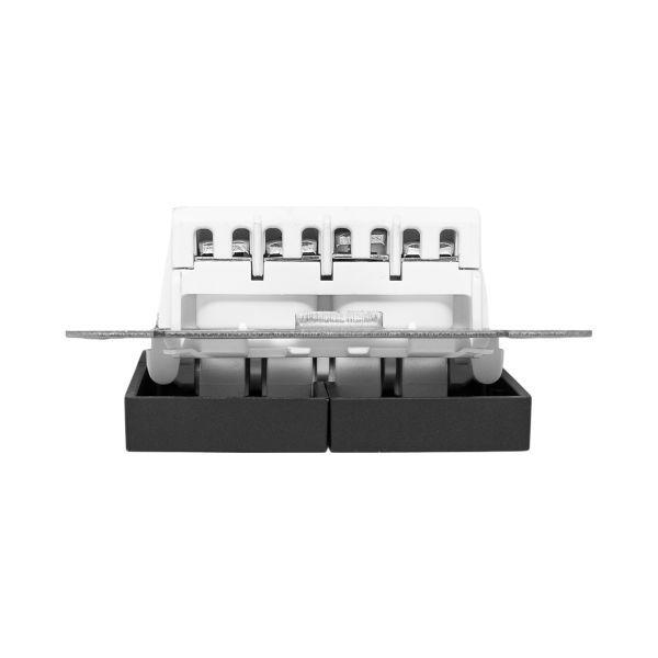 Выполнен из пластика, устойчивого к ультрафиолетовому излучению. Механизм совместим как с медной, так и с алюминиевой проводкой.
