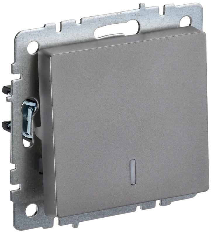 BR-V12-1-10-K46 | Выключатель проходной 1-кл. СП BRITE ВС10-1-7-БрС 10А с индик. механизм сталь IEK