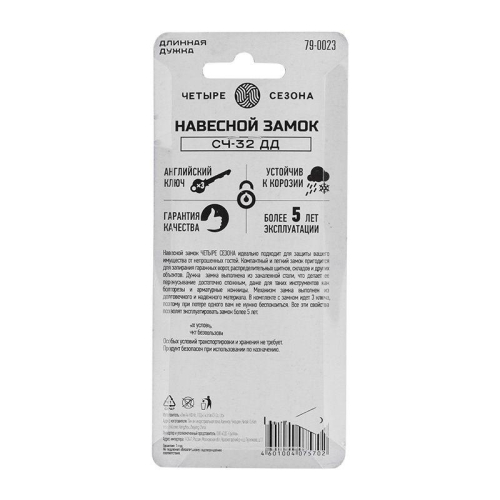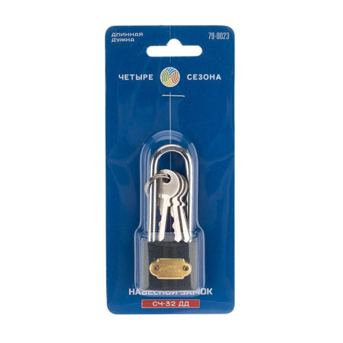 Замок навесной "Чугун" 32мм длинная дужка ЧЕТЫРЕ СЕЗОНА 79-0023
