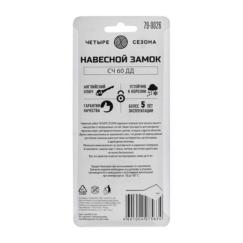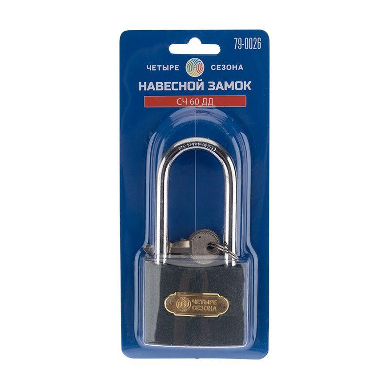 Замок навесной "Чугун" 60мм длинная дужка ЧЕТЫРЕ СЕЗОНА 79-0026