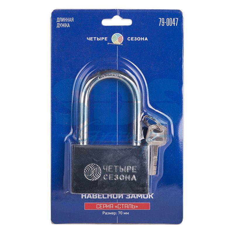 Замок навесной "Сталь" 70мм длинная дужка ЧЕТЫРЕ СЕЗОНА 79-0047