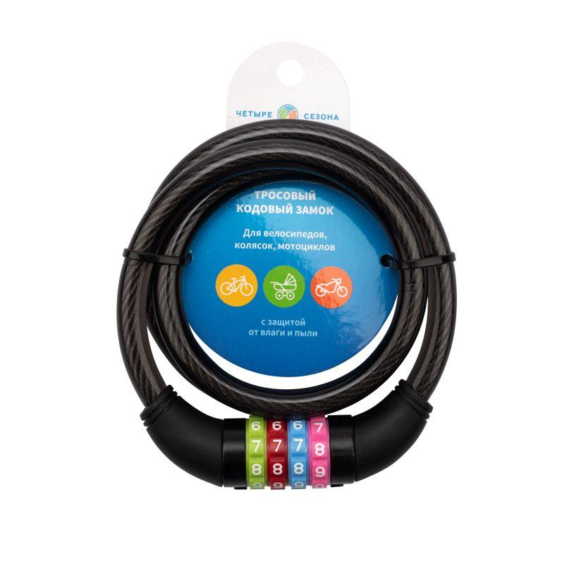 Замок тросовый кодовый взломостойкий для велосипедов и колясок 100см черн. ЧЕТЫРЕ СЕЗОНА 79-0206