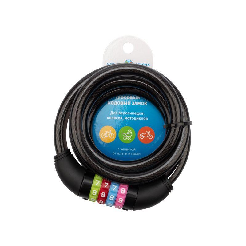 Замок тросовый кодовый взломостойкий для велосипедов и колясок 150см черн. ЧЕТЫРЕ СЕЗОНА 79-0216