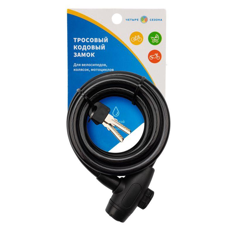 Замок тросовый взломостойкий для велосипедов и колясок с ключом 150см черн. ЧЕТЫРЕ СЕЗОНА 79-0316