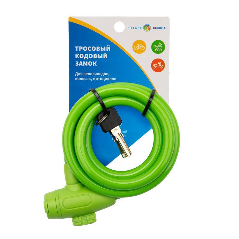 Замок тросовый взломостойкий для велосипедов и колясок с ключом 150см зел. ЧЕТЫРЕ СЕЗОНА 79-0313