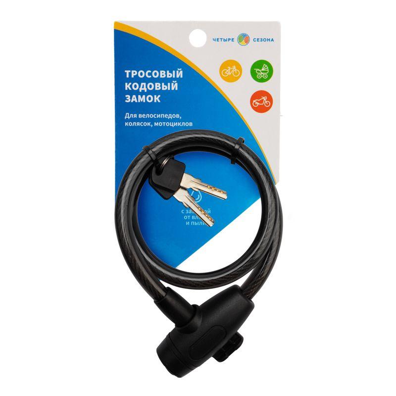 Замок тросовый взломостойкий для велосипедов и колясок с ключом 65см черн. ЧЕТЫРЕ СЕЗОНА 79-0366