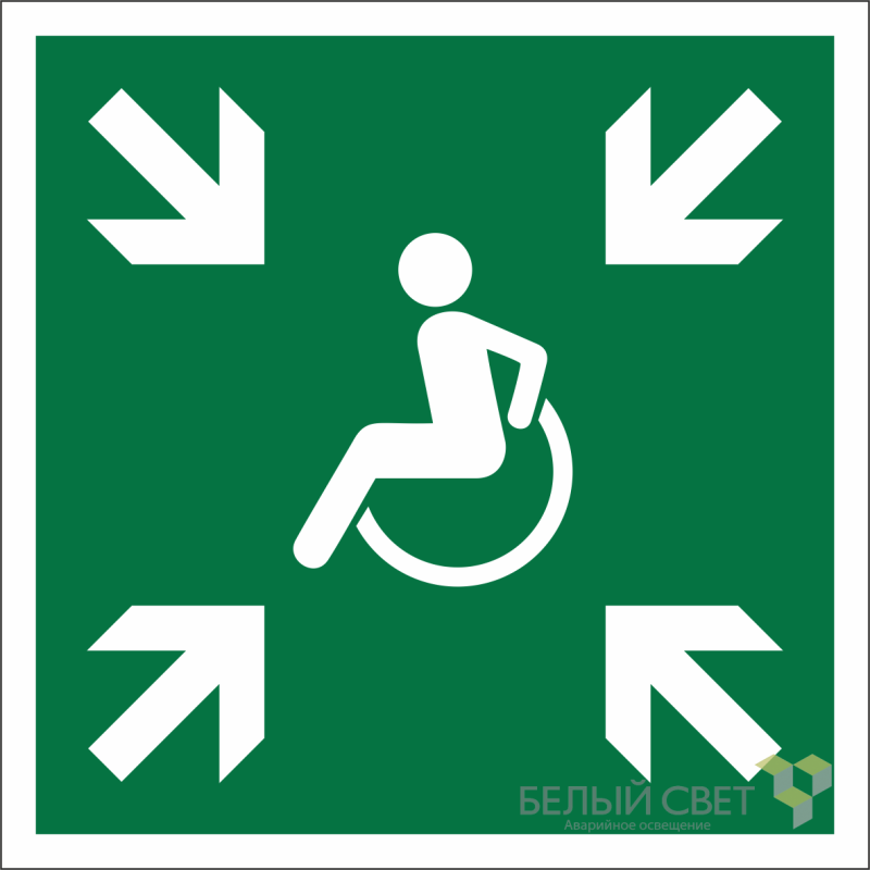 a18492 | Знак безопасности BL-1515.E65 "Пункт (место) сбора МГН (Безопасная зона МГН)" Белый Свет