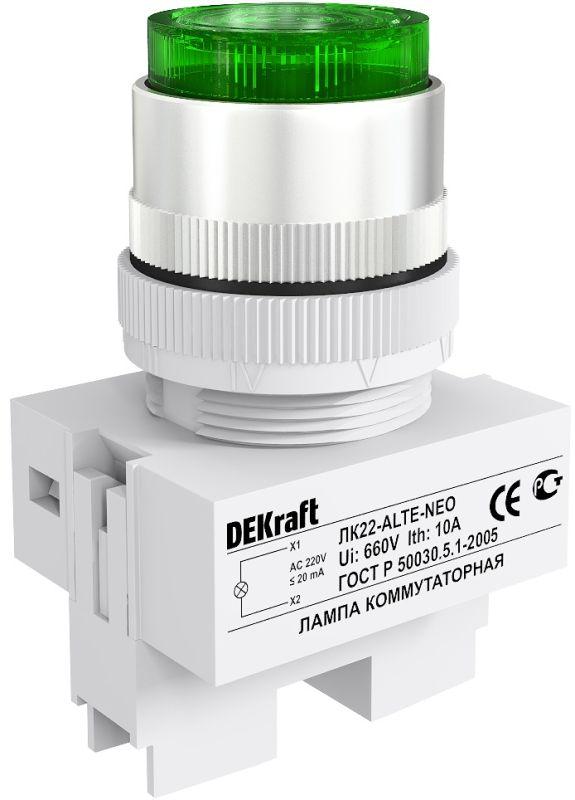Лампа коммутационная ALTE ЛК-22 d22мм 220В зел. неон DEKraft 25007DEK