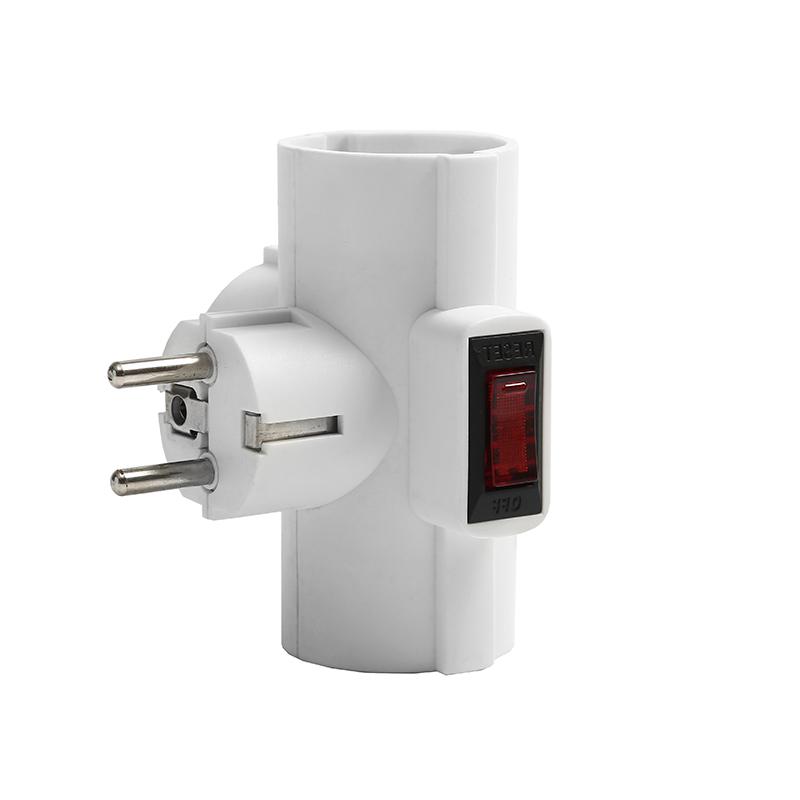 2663 | Разветвитель 3-м Т-образный с выключателем с заземл. 16А 3500Вт 250В бел. DОМТОК