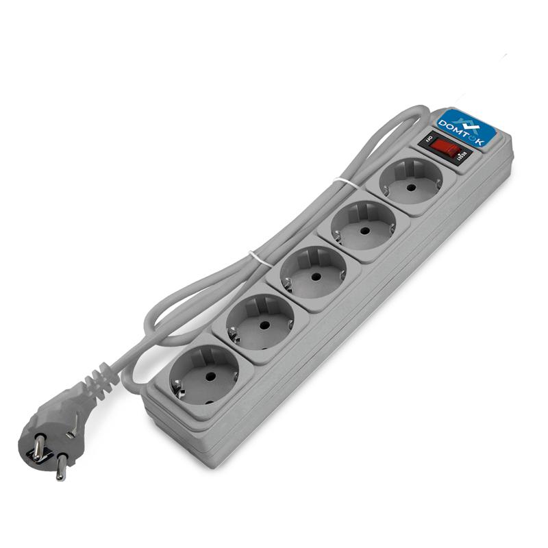 2533 | Удлинитель с сетевым фильтром 5х3м с заземл 10А IP20 2.2кВт ПВС 3х1 с выкл. сер. DOMTOK