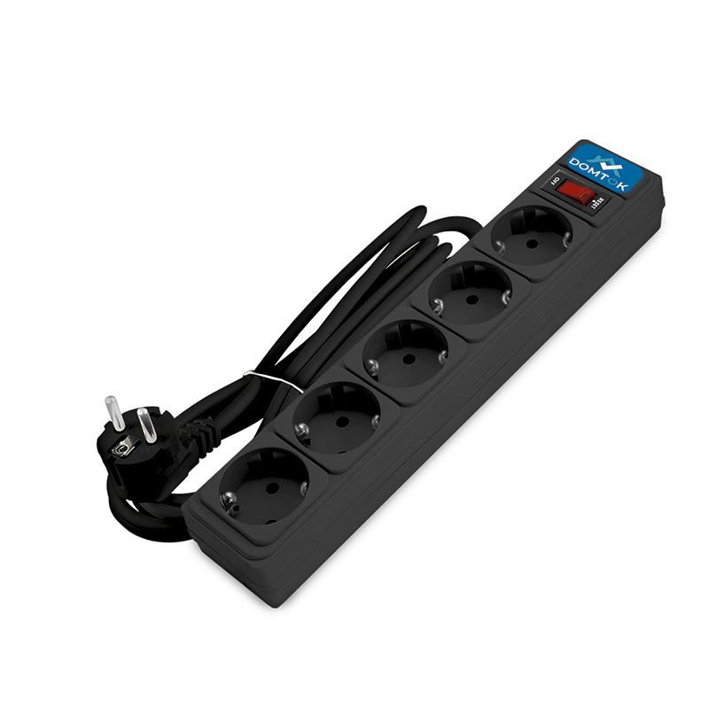 2538 | Удлинитель с сетевым фильтром 5х3м с заземл 10А IP20 2.2кВт ПВС 3х1 с выкл. черн. DOMTOK