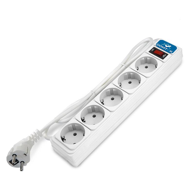 Удлинитель с сетевым фильтром 5х3м с заземл 10А IP20 2.2кВт ПВС 3х1 с выкл. бел. DOMTOK 2528