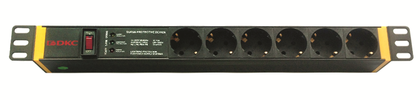 Блок распределения питания 6-м 16А Schuko вх. разъем Schuko для 19дюйм шкафов защита от перенапряж. с индикатором сети DKC R519SH6OPSHSP