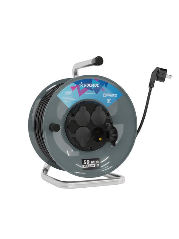 Удлинитель на катушке 4х50м с заземл. 16А IP54 4кВт КГ 3х2.5 термозащ. КОСМОС YKKsm50m-4g-Z(2.5)KG