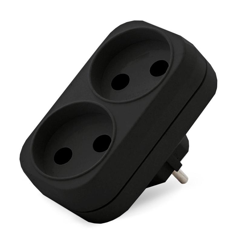 Разветвитель 2-м без заземл. 10А плоский черн. UNIVersal 1932