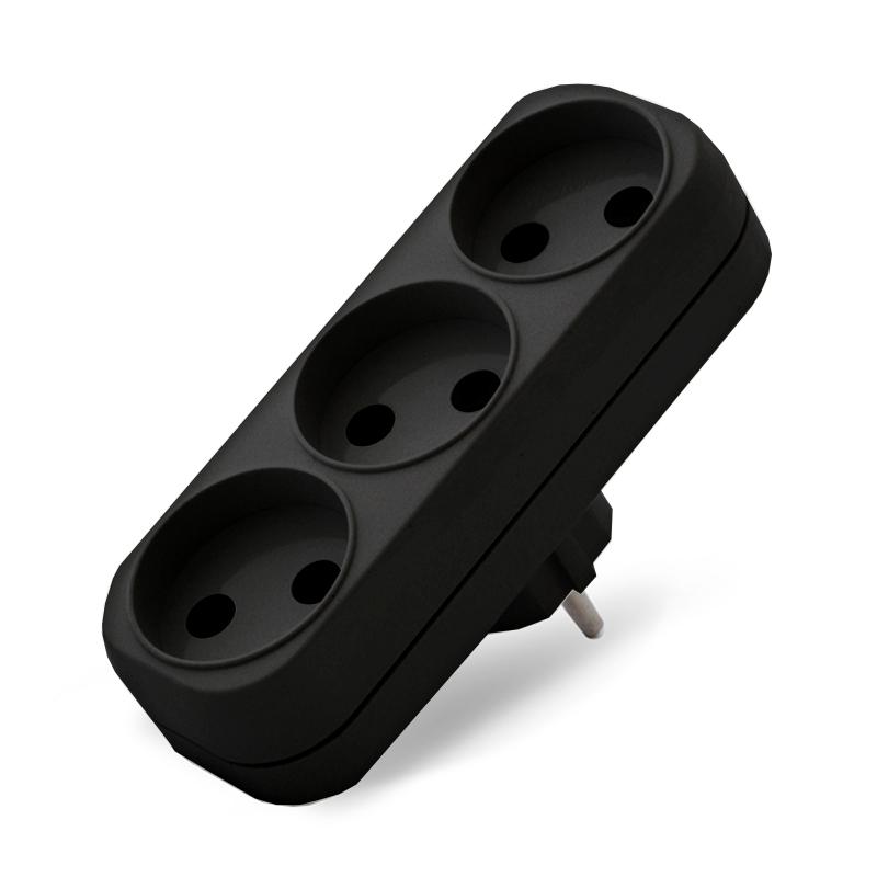Разветвитель 3-м без заземл. 10А плоский черн. UNIVersal 1934