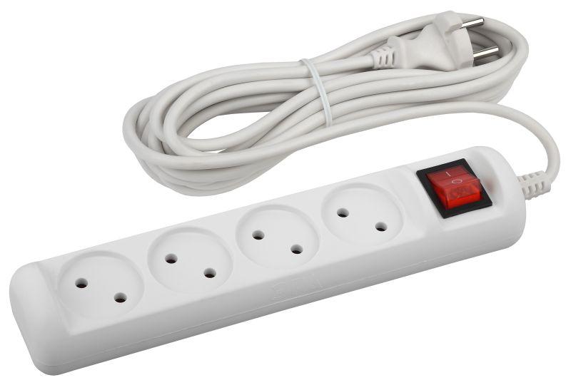 Удлинитель 4х5 м без заземл. с выкл. 10А ПВС 2х1 U-4s-5m-2x1 ЭРА Б0044054