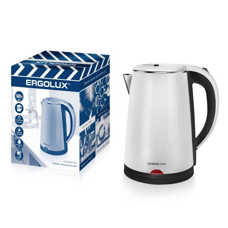 Чайник ELX-KS09-C41 нерж. сталь/пластик 1.8л 220-240В 1600Вт черн./бел. ПРОМО Ergolux 14927