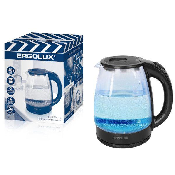 Чайник стеклянный ELX-KG06-C02 черн. ПРОМО Ergolux 14923
