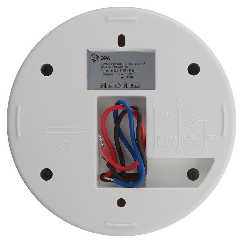Датчик движения MD 016 бел. макс. нагрузка 1200Вт угол обзора 360град. дальность 6м (50750) бел. Эра Б0043793
