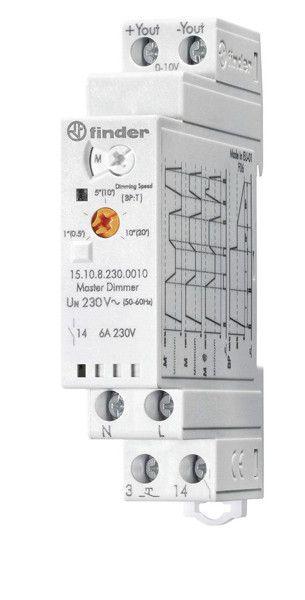 Диммер модульный ведущий электронный (Master) 4 функции сигнал 0-10В подключение до 32 ведомых диммеров (Slave) управление до 15 кнопок с подсветкой 230В AC (50Гц) IP20 FINDER 151082300010