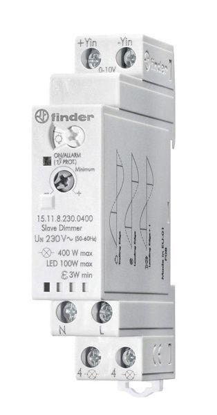 Диммер модульный ведомый электронный (Slave) управление сигналом 0-10В от ведущего диммера (Master) разные типы ламп до 400Вт 230В AC (50Гц) IP20 FINDER 151182300400