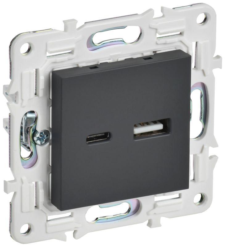 Розетка USB AtlasDesign тип A+C 5В/2.4А 2х5В/1.2А механизм карбон SE ATN001039