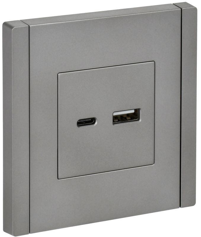 Розетка USB A+C 3.1А FORTE&PIANO FP550 сталь IEK FP-U22-D31-K46
