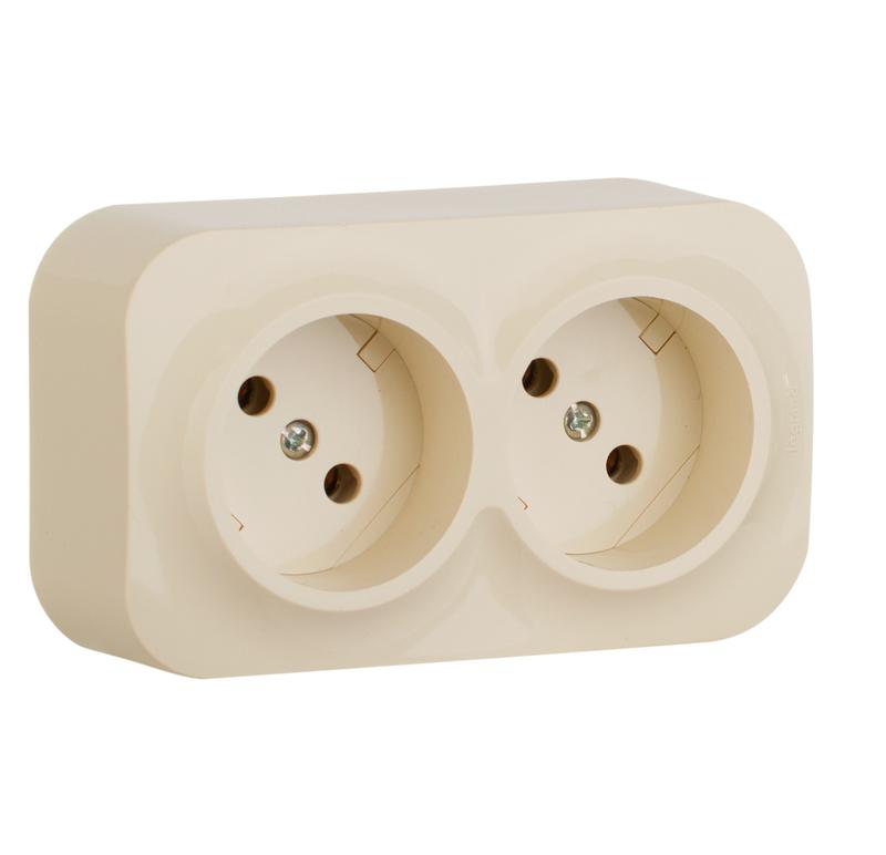 782261 | Розетка 2-м ОП Quteo 16А IP20 250В 2х2P без заземл. без защ. шторок сл. кость Leg