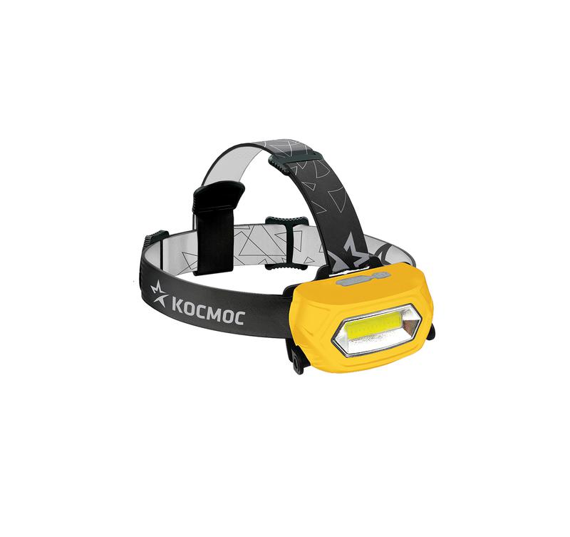 Фонарь аккумуляторный налобный 3Вт XPE LED+5Вт COB LED Li-ion 18650 1200мА.ч корпус ABS-пластик индикатор уровня заряда USB-шнур type C регулируемый эласт. ремешок КОСМОС KOC507Lit