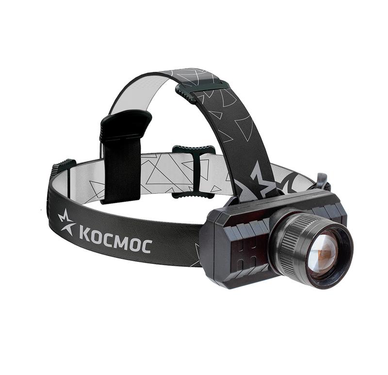 Фонарь аккумуляторный налобный XPE 3Вт с зумом литиевый аккум. 1.2А.ч ЗУ Micro USB шнур (в компл.) КОСМОС KocH3WZoo