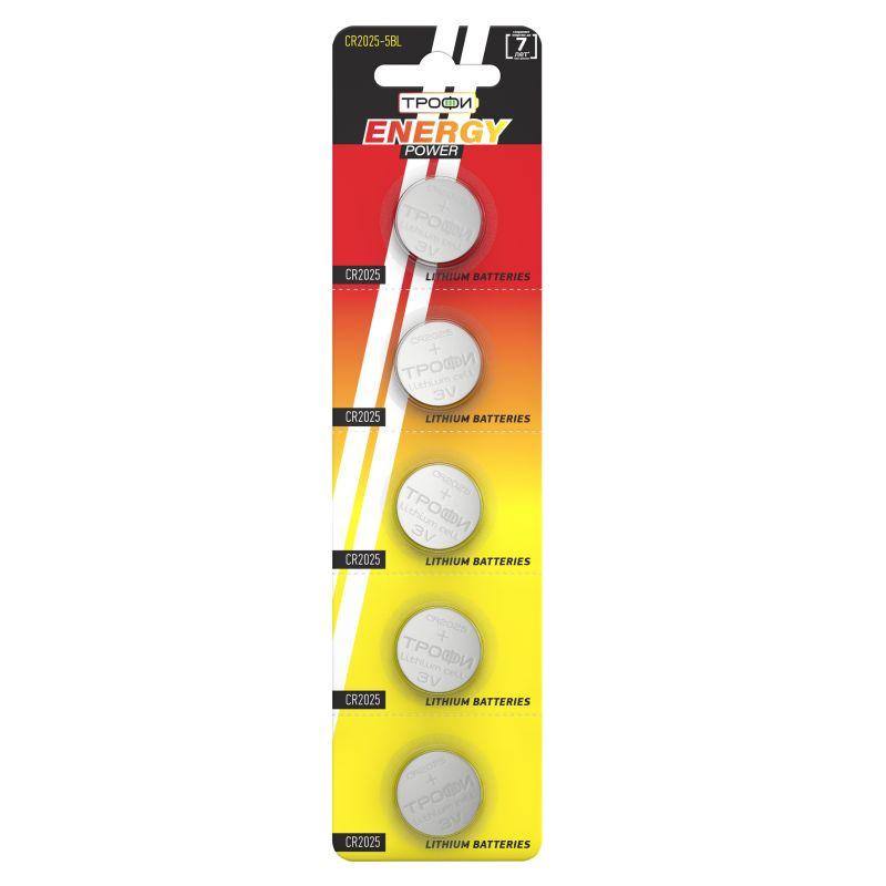Элемент питания литиевый CR2025-5BL (блист.5шт) Трофи C0032184