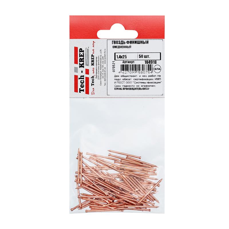 104918 | Гвоздь финишный 1.4х25 омедненный (уп.50шт) Tech-Krep/Zitar