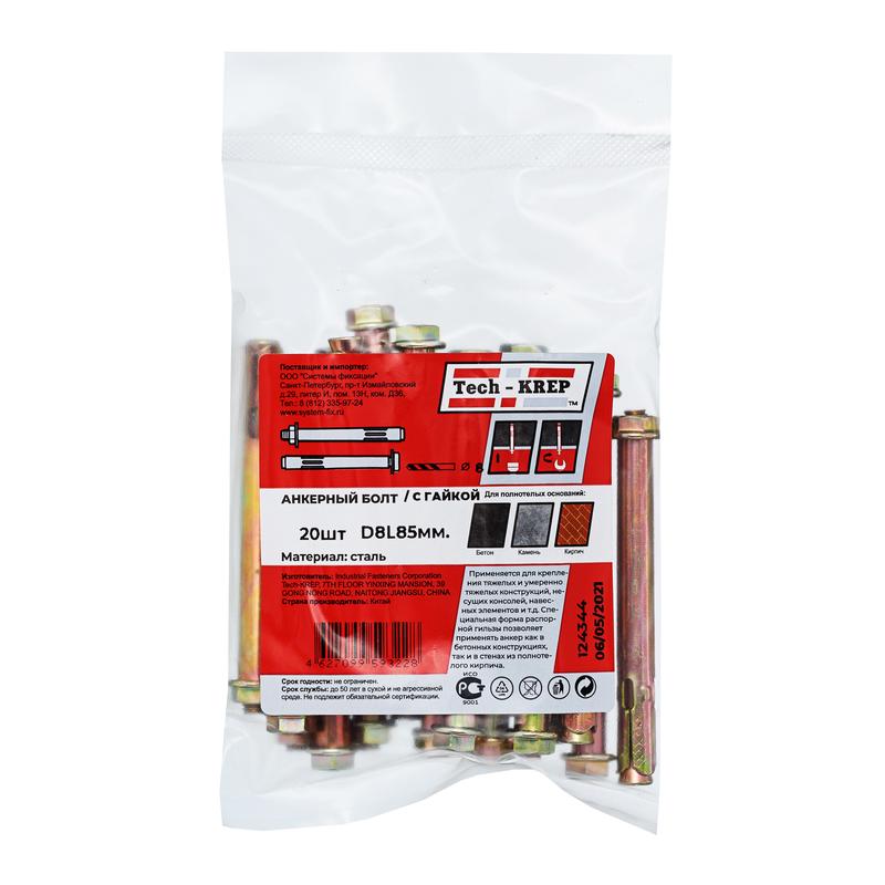124344 | Болт анкерный с гайкой 8х85 (уп.20шт) Tech-Krep/Zitar