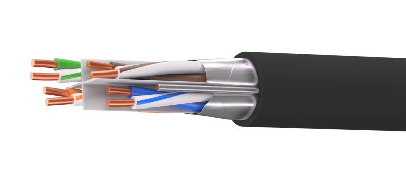 Кабель витая пара F/UTP кат.5E 4х2х24AWG solid LSZH-UV OUTDOOR FTP-4P-Cat.5e-SOLID-OUT-LSZH-UV черн. (уп.305м) Cabeus 7176c