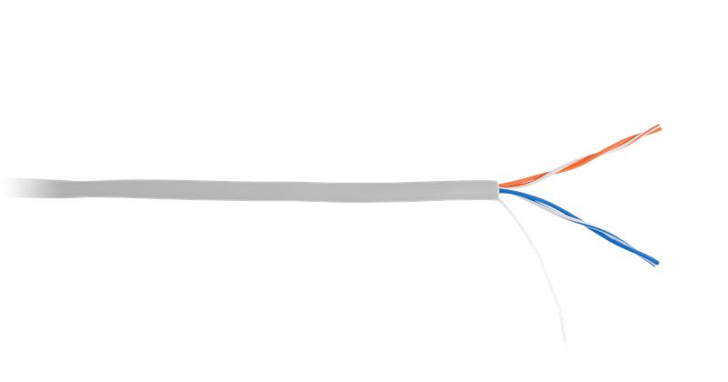 Кабель U/UTP кат.5 (класс D) 2 пары 100МГц ОЖ BC чистая медь внутр. PVC нг (B) сер. (500м) NETLAN EC-UU002-5-PVC-GY-5