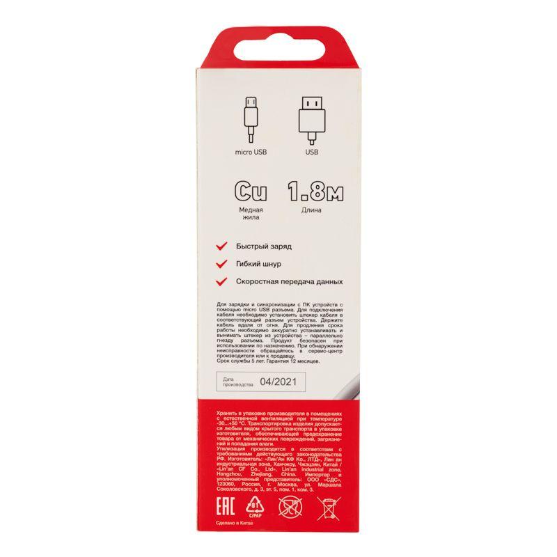 Кабель USB-A - Lightning 2.4А 2м ПВХ бел. Rexant 18-1125