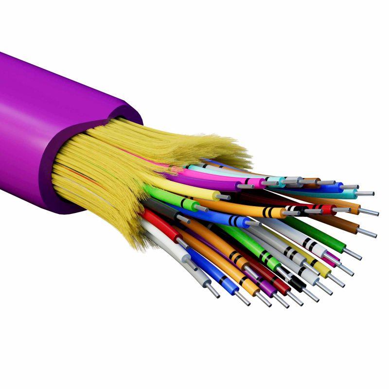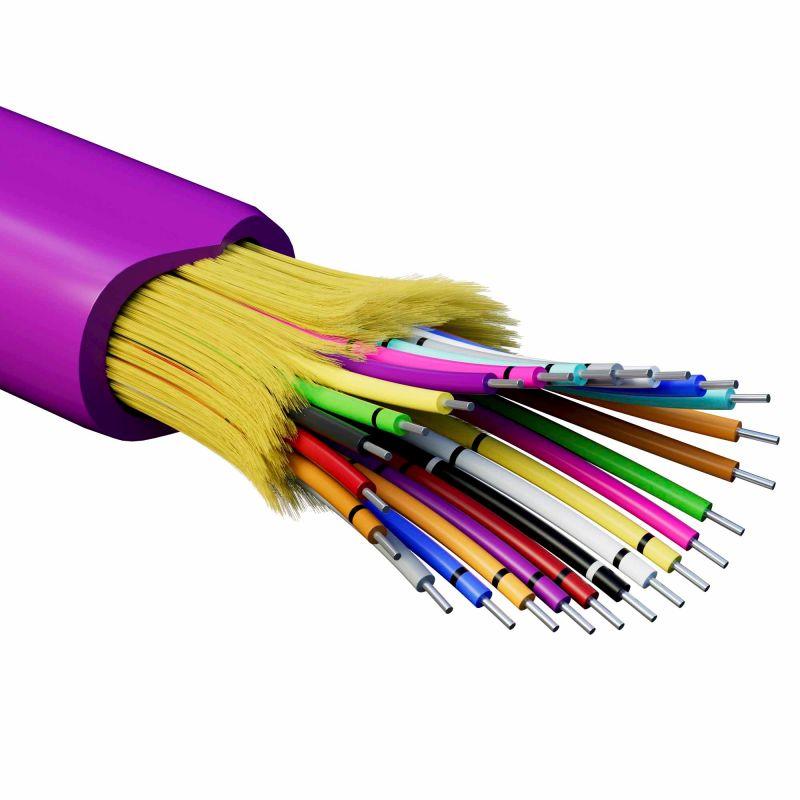 Кабель волоконно-оптический распределительный арамидные упрочняющие нити для внутренней прокладки нг(А)-HF 24 ОВ категорияOM4 (G.651.1) плотный буфер 0.4кН барабан 500м DKC RNDT4C24MG01-E
